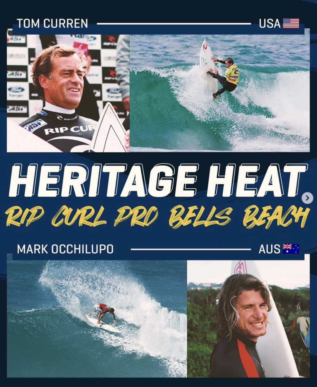 Tom Curren and Mark Occhilupo – two of surfing's most influential characters and rivals, will compete at Bells in a special Heritage Heat during the Rip Curl Pro Bells Beach event window.